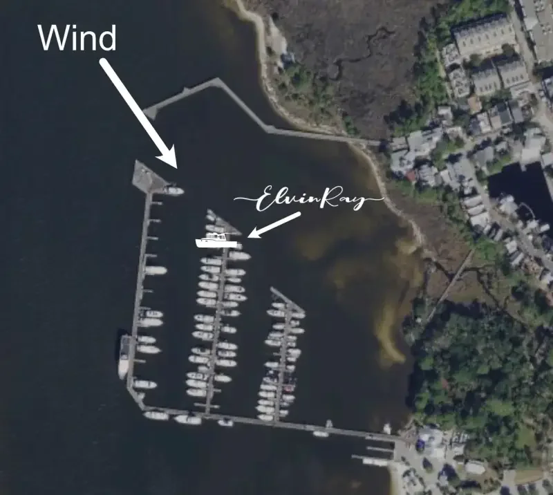 After seeing an amazing sunset and eating some mediocre pizza, we headed back to the boat to settle in for the night.The weather forecast didn't include rain, but the winds did pick up as the evening wore on. The wind and waves were coming out of the Northwest, through the marina inlet, and right to our slip. Our dock at The Wharf was well-protected and calm. Our dock at Baytown was almost the opposite. As the wind picked up, so did the waves, causing Elvin Ray to move and roll at the dock. We were tied securely and the boat was protected with fenders to avoid any damage from the constant motion against the dock. I actually kind of enjoyed the rocking motion.